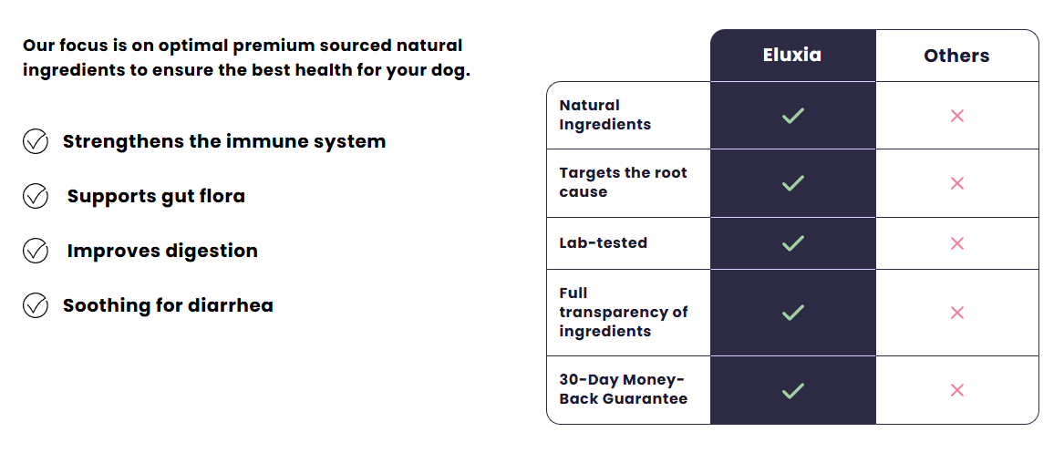 After a gastrointestinal illness, my dog’s stool was unstable for weeks. With the probiotics by Eluxia, it finally settled down. I simply mix it into his food in the morning – works great.